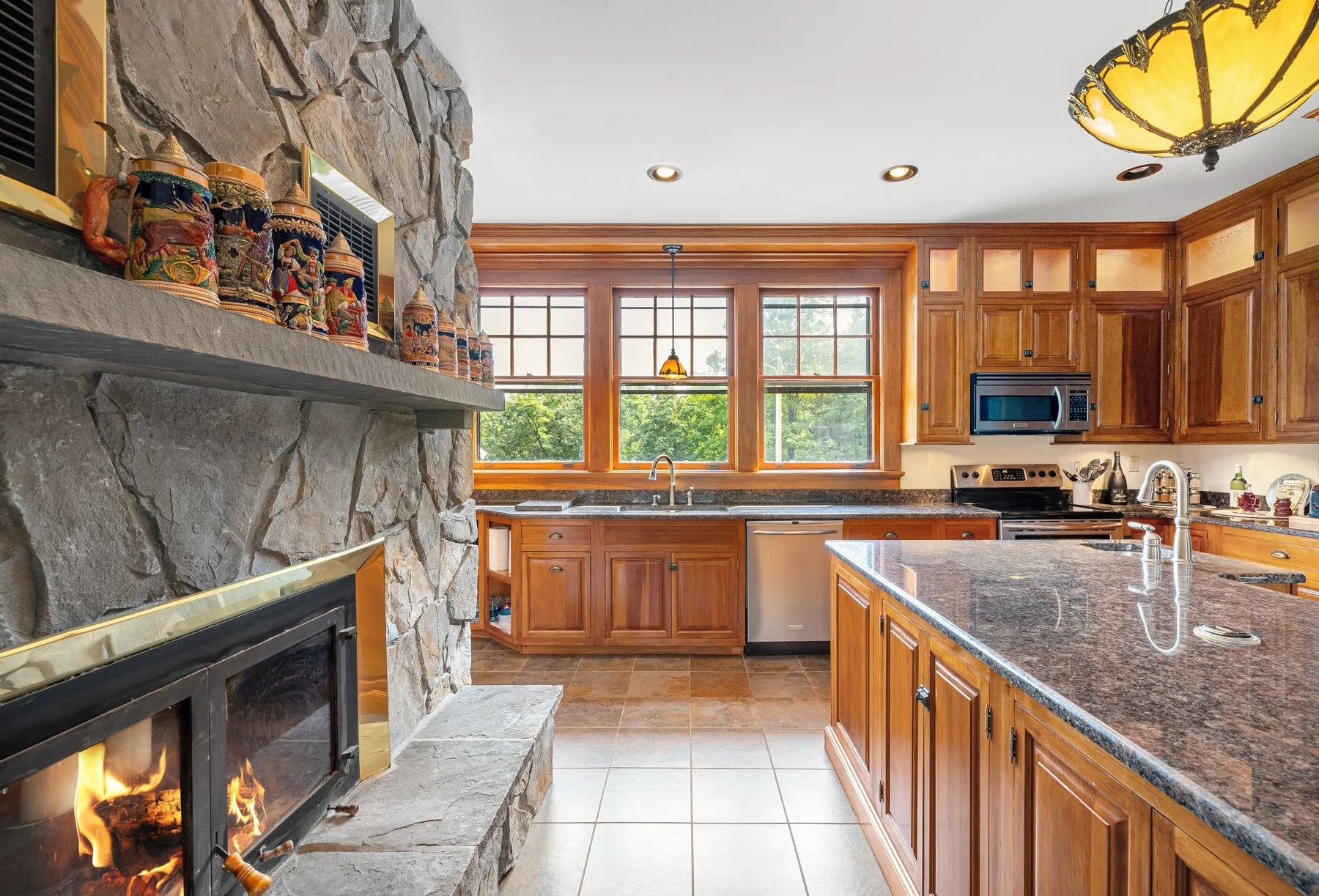Step into the heart of Evaley, where the kitchen seamlessly blends early 20th-century charm with modern functionality. This warm and inviting space is adorned with rich chestnut woodwork, intricate crown molding, and gleaming hardwood floors. Whether preparing gourmet meals or enjoying casual family moments, the kitchen offers the perfect balance of timeless elegance and practicality.