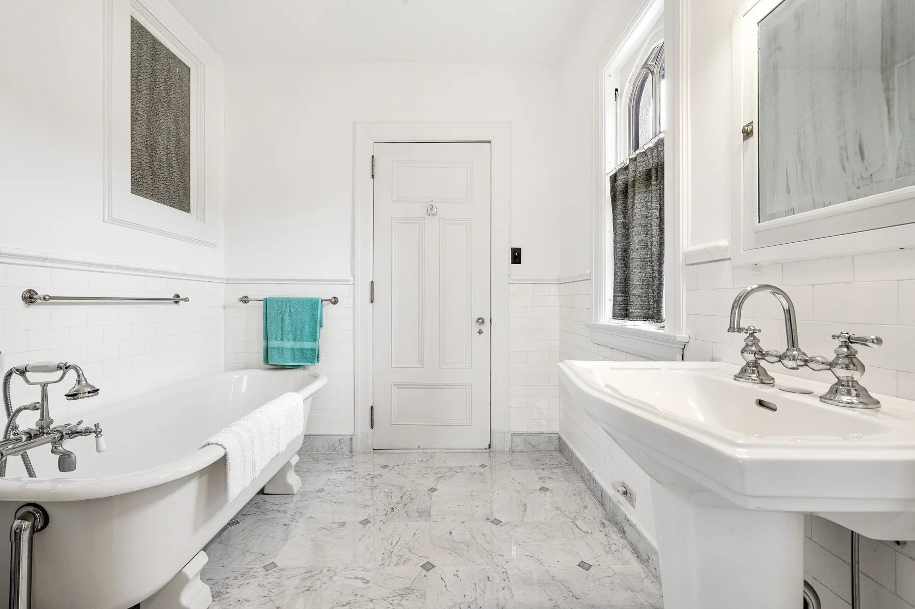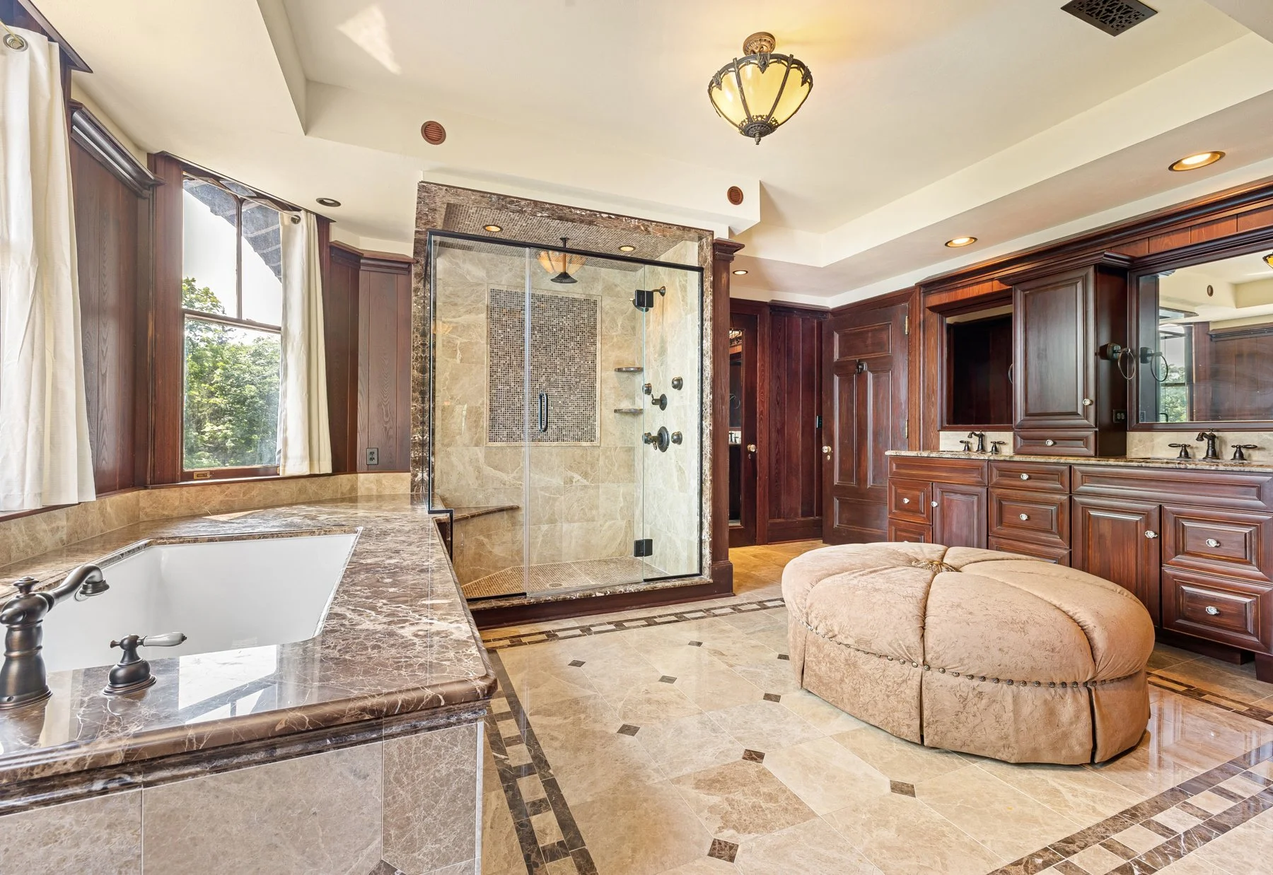 The primary bathroom is a spa-like haven, boasting refined finishes and thoughtful design. Every detail has been carefully curated to provide a space that is both elegant and serene, perfect for unwinding after a long day or beginning your mornings in style.